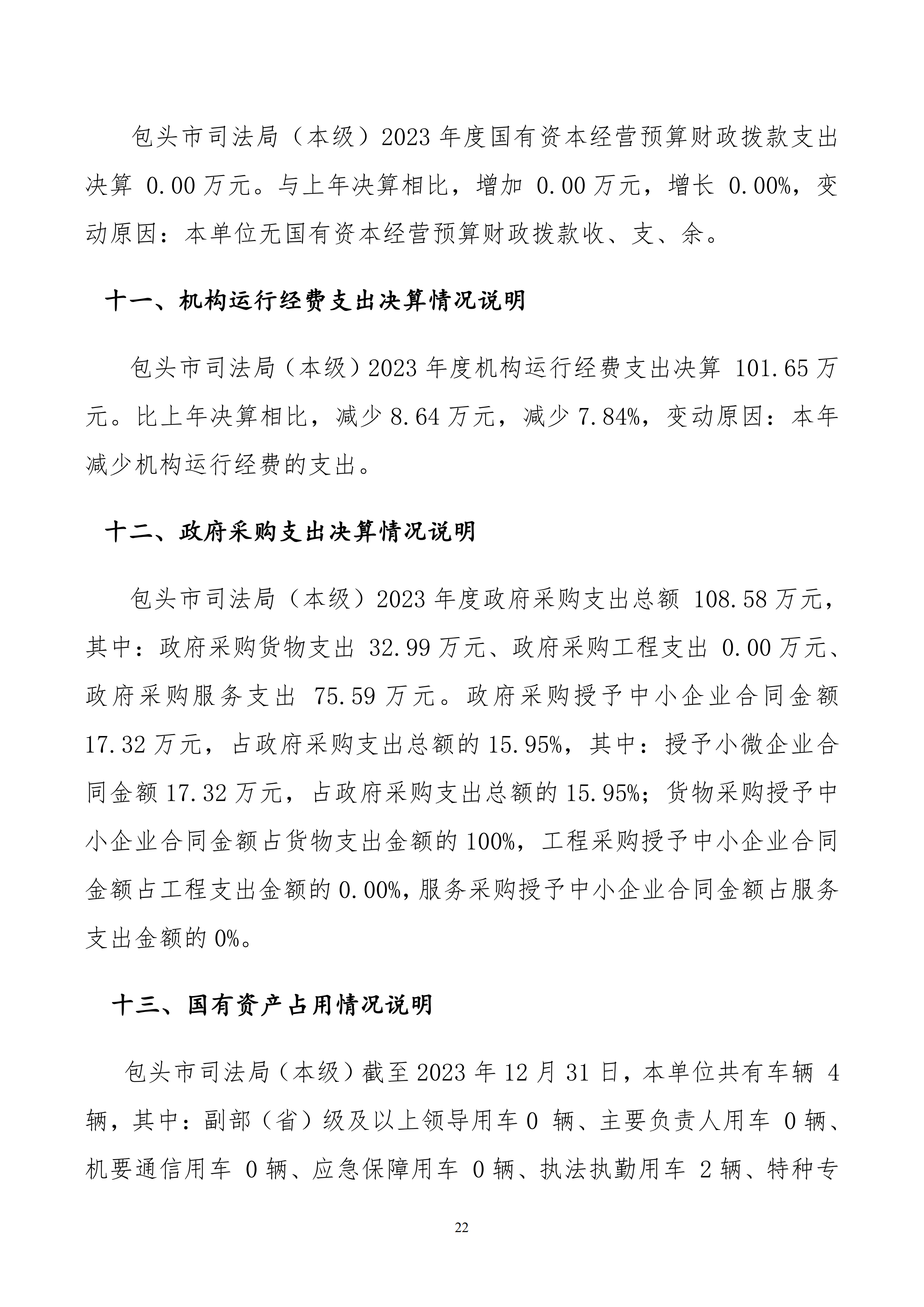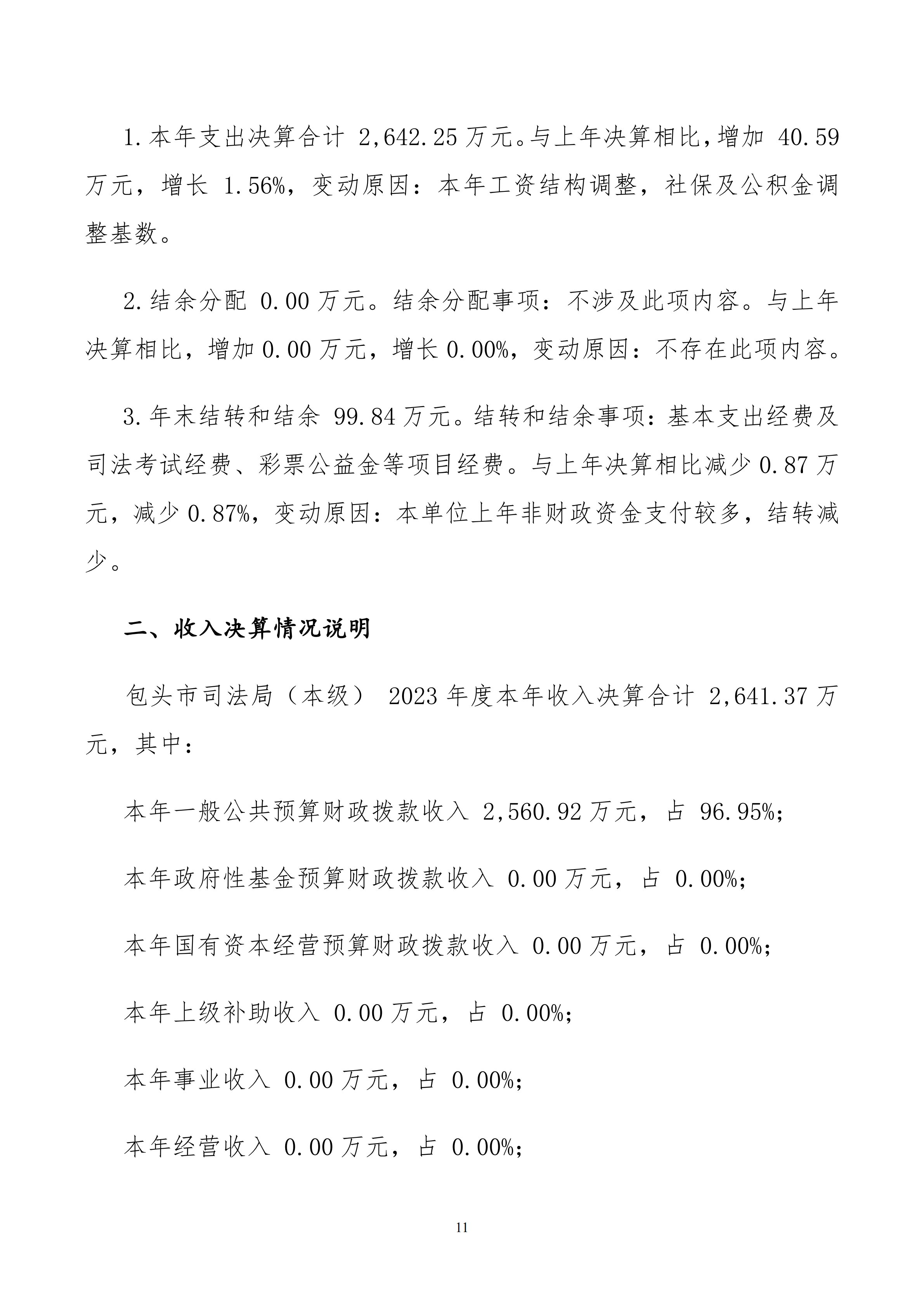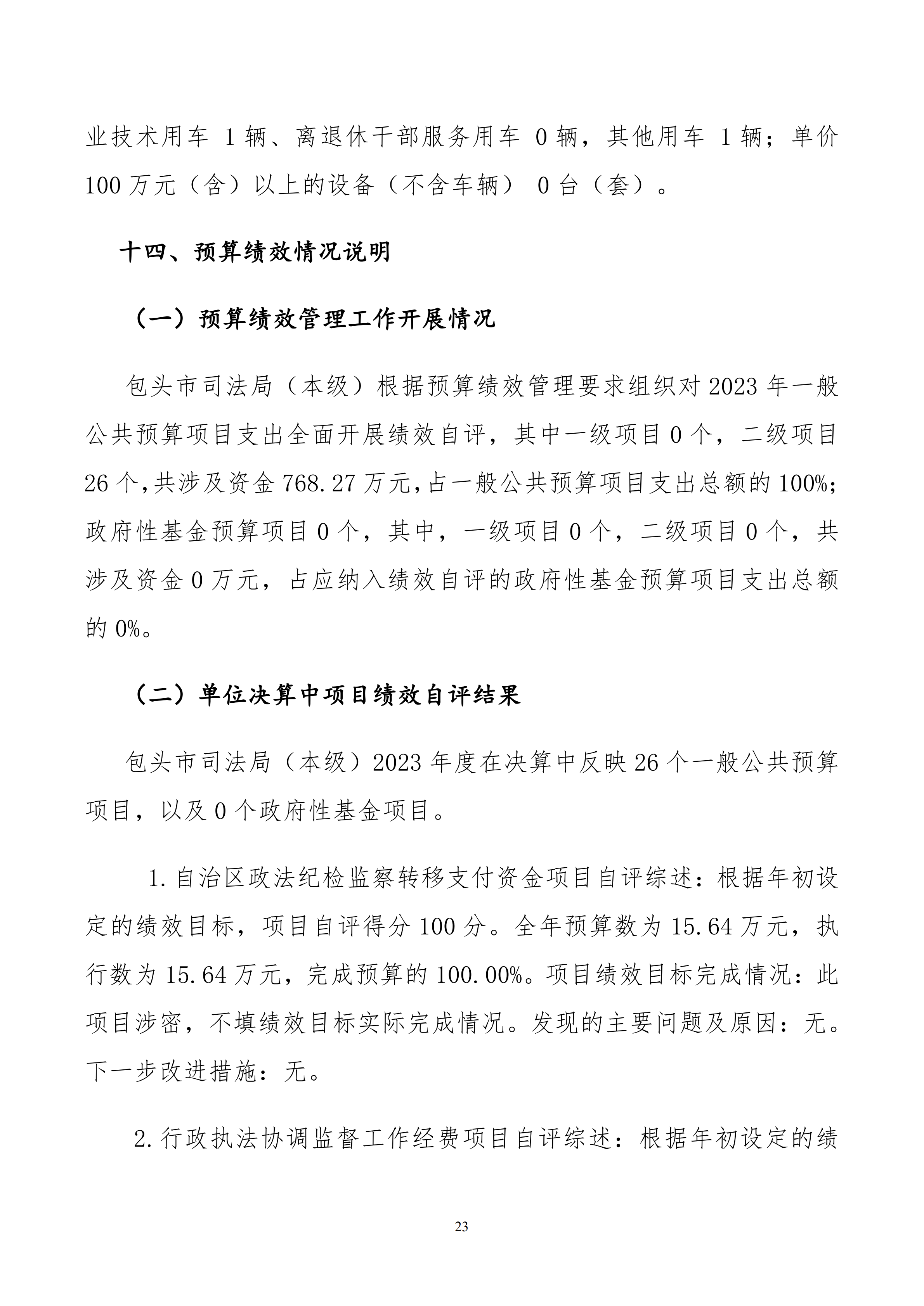 2023年度包头市司法局(本级)决算公开
