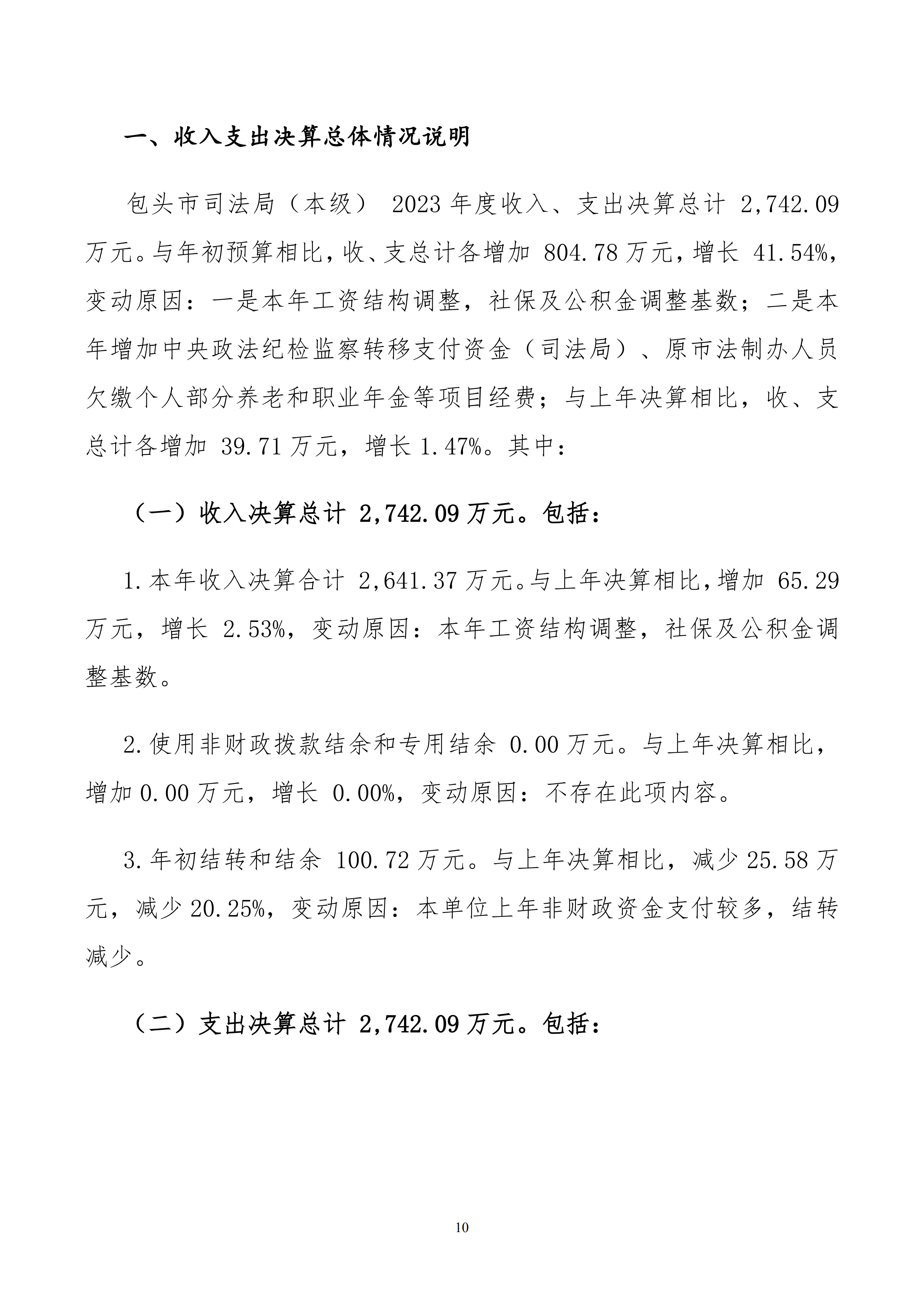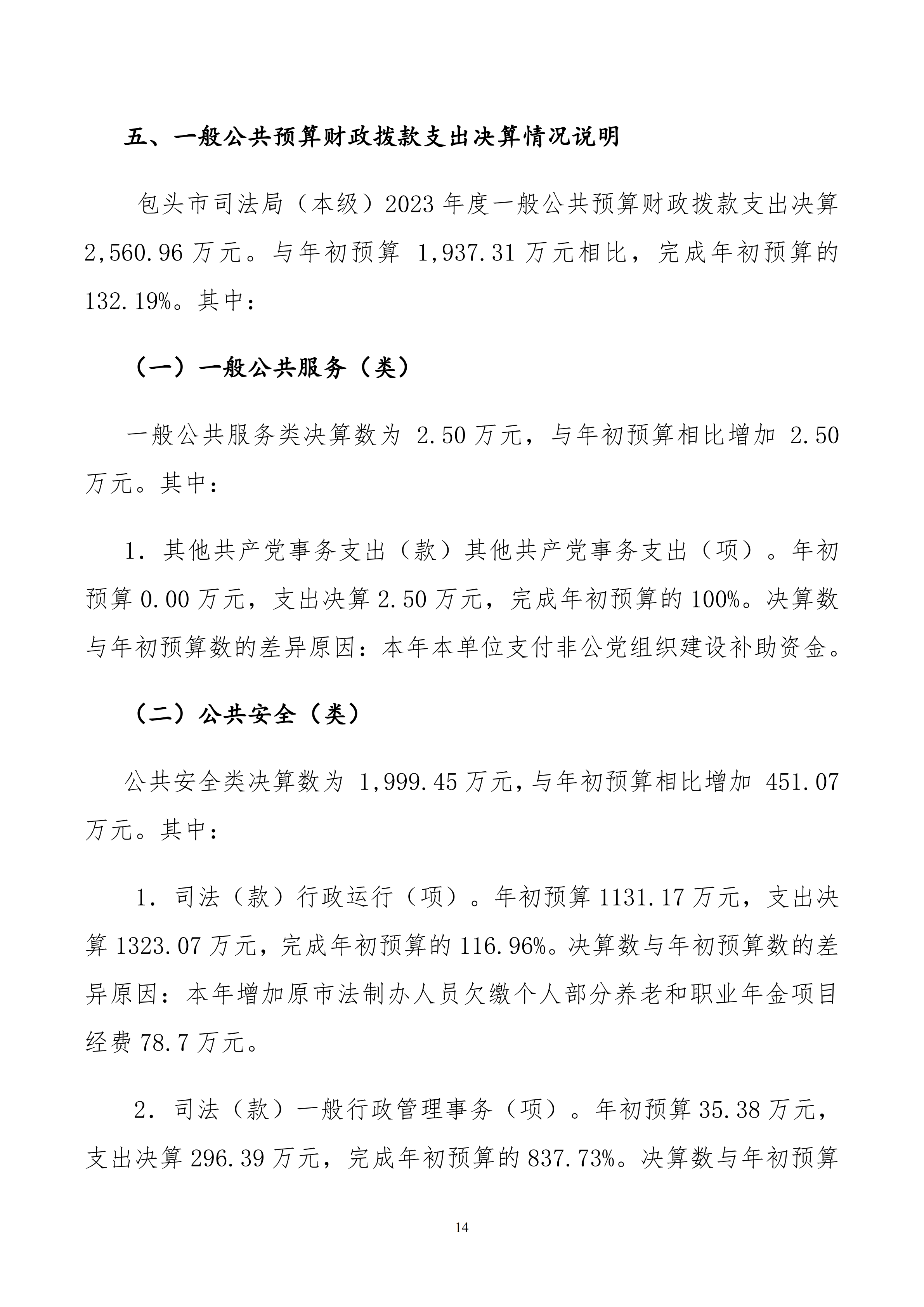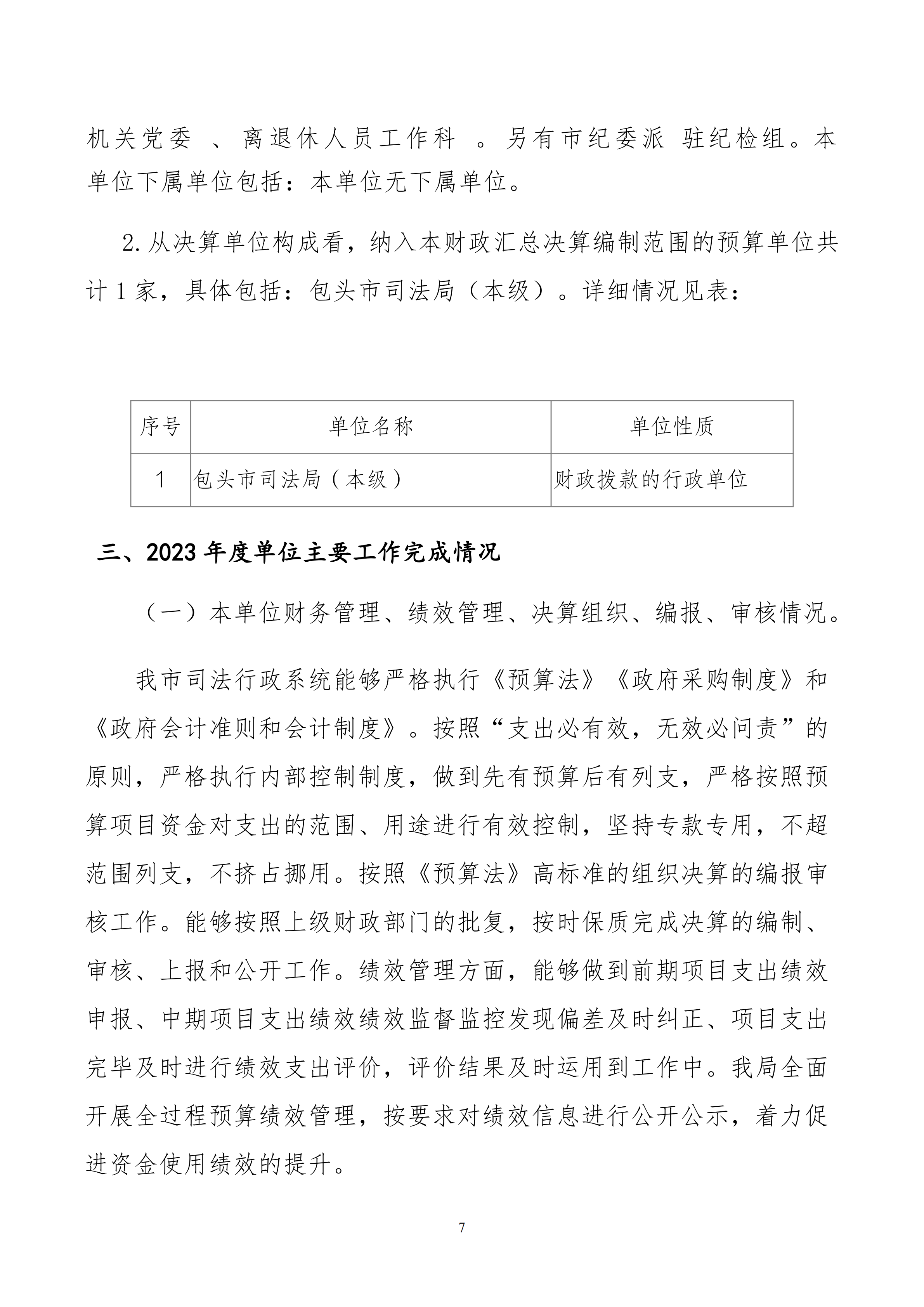 2023年度包头市司法局(本级)决算公开