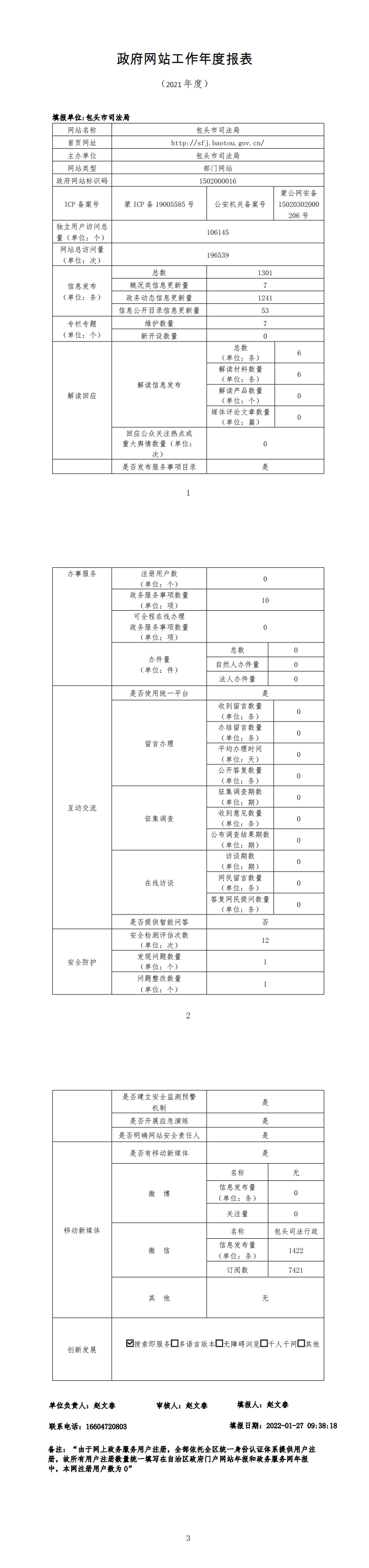 包头市司法局网站工作年度报表(2021年度)