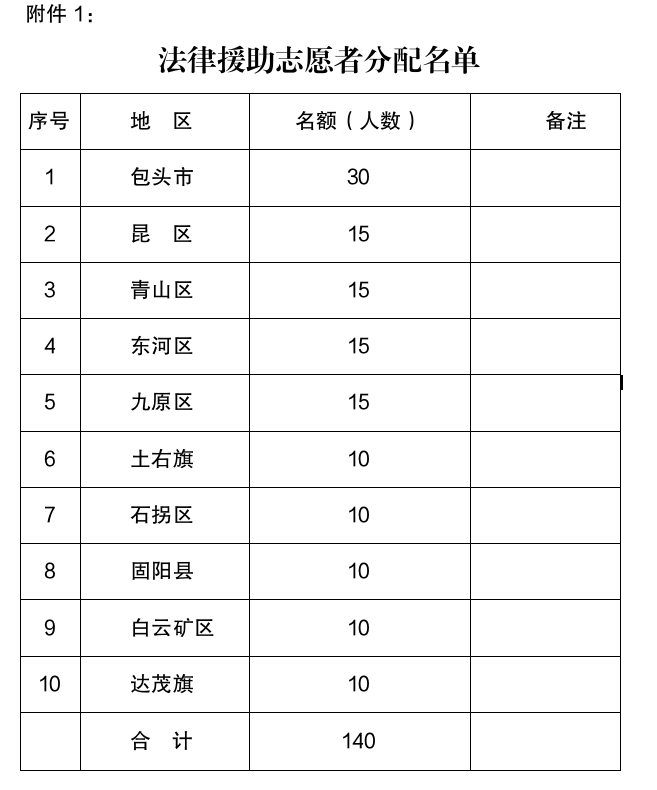 附件:1.法律援助志愿者分配名单